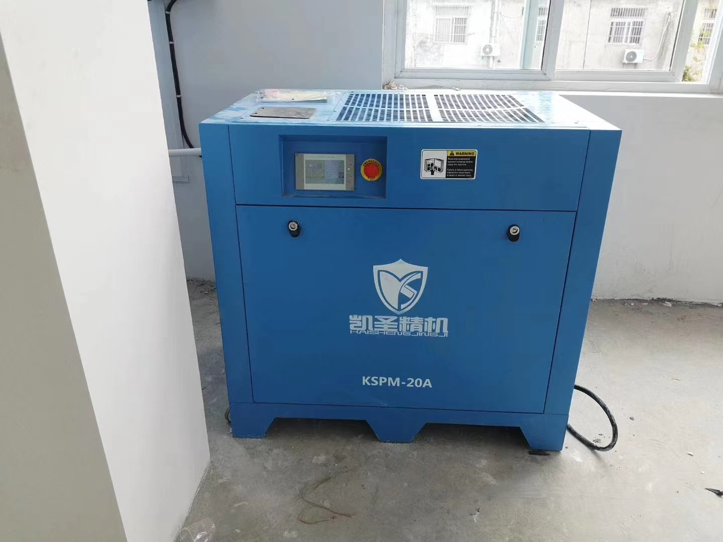 永磁變頻空壓機的核心技術在于永磁同步電機與變頻調速系統的深度融合。永磁電機采用稀土永磁材料替代傳統電磁線圈,消除勵磁損耗,效率較普通異步電機提升15%-20%;變頻器通過實時監測用氣需求,動態調整電機轉速,實現“按需供氣”。這種組合使空壓機在部分負載時仍能保持高能效,避免傳統工頻機“大馬拉小車”的能源浪費。